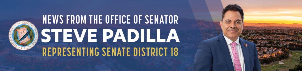 Steve Padilla represents the 18th Senate District, which includes the communities of Chula Vista, the Coachella Valley, Imperial Beach, the Imperial Valley, National City, and San Diego. Prior to his election to the Senate in 2022, Senator Padilla was the first person of color ever elected to city office in Chula Vista, the first Latino Mayor, and the first openly LGBT person to serve or be elected to city office. Website of Senator Steve Padilla: https://sd18.senate.ca.gov/